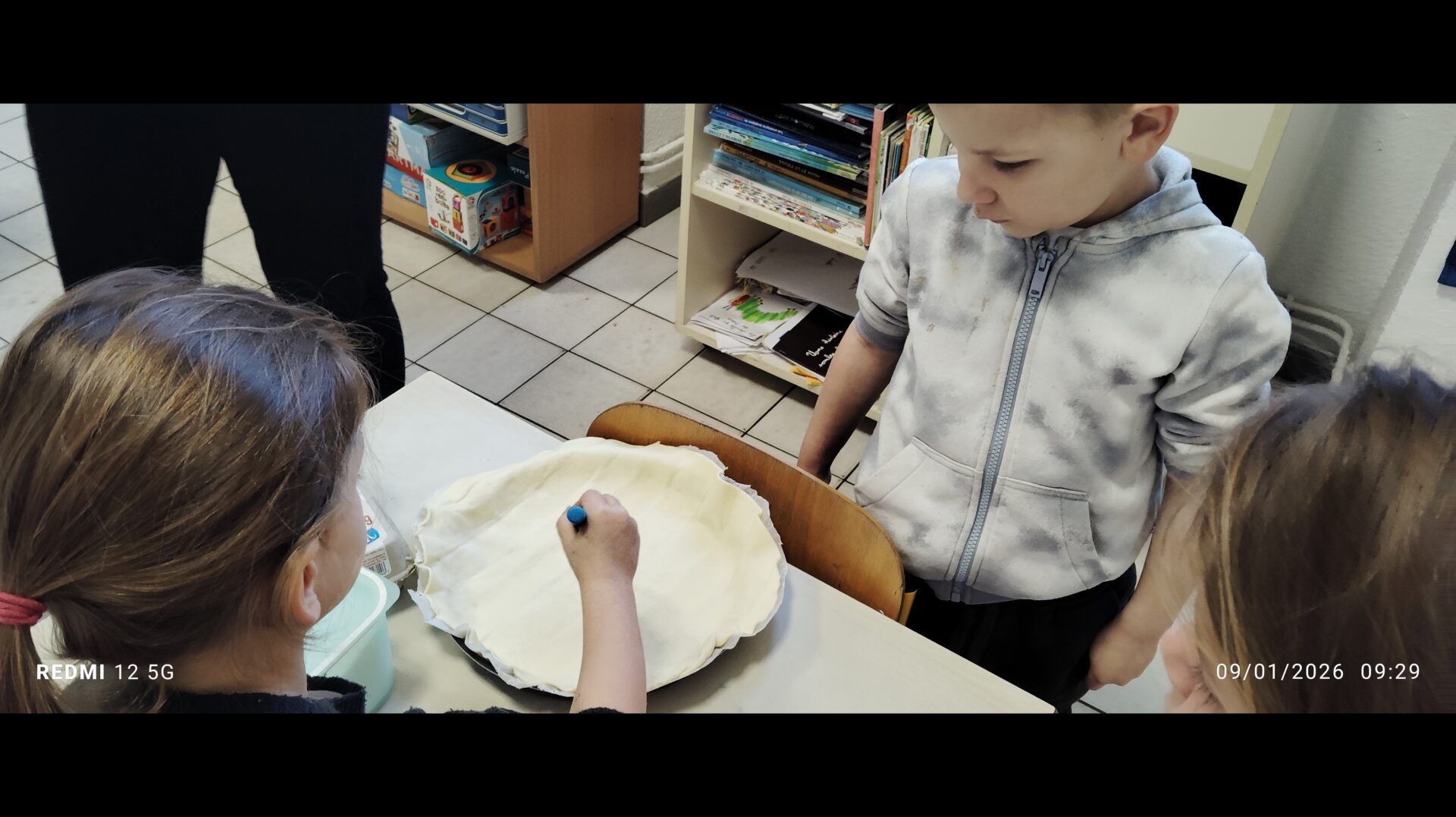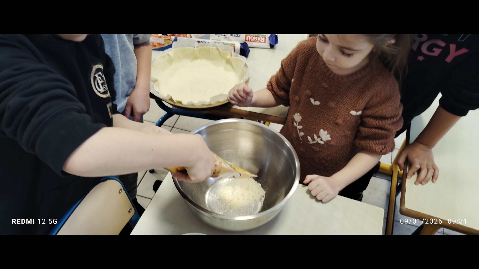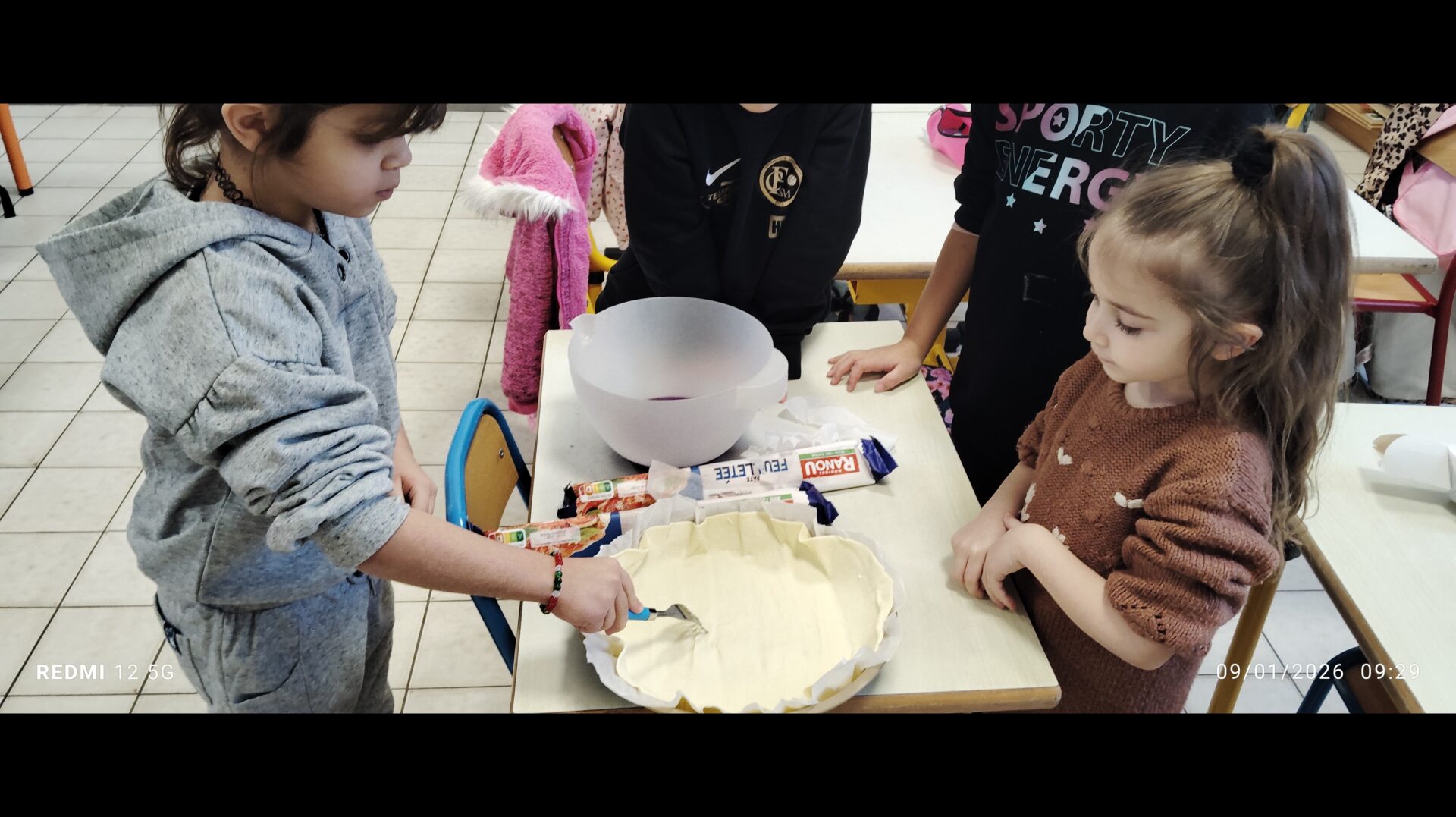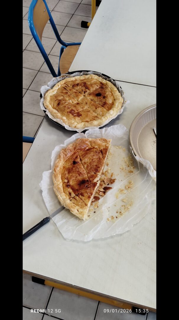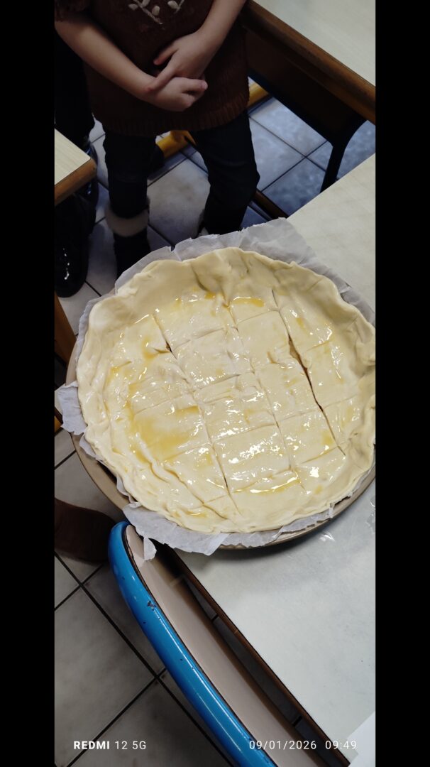 A l’occasion d’un projet en langage mené par les GS autour d’albums  » Roule galette » et  » Roule brocoli », les enfants ont confectionnés des galettes.                                                                                                                                                                                                        La classe de GS-CP avec la recette à la frangipane et la classe de GS-CE1 avec la recette comtoise.