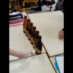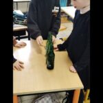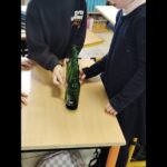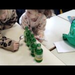 En groupe, munis de bouteilles en verre qu’ils ont rempli d’eau, les enfants ont crée des mélodies.